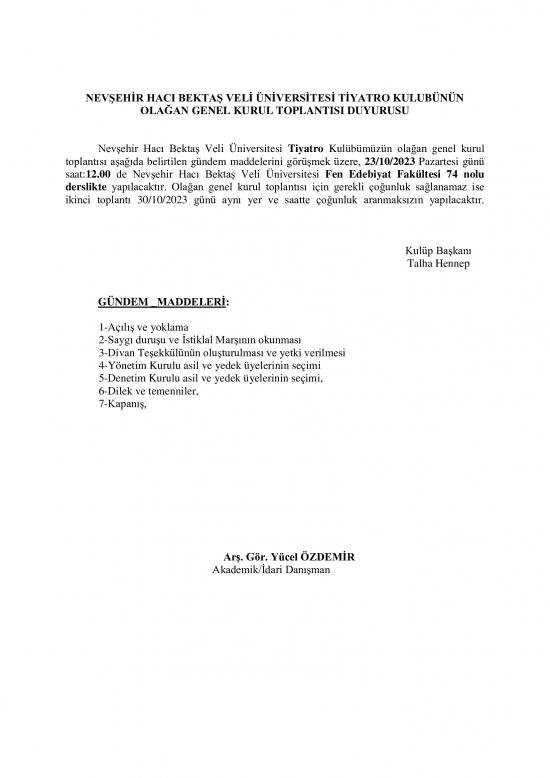 - "NEVÜ Kültür Kulübü" Olağan Genel Kurul Toplantı Duyurusu