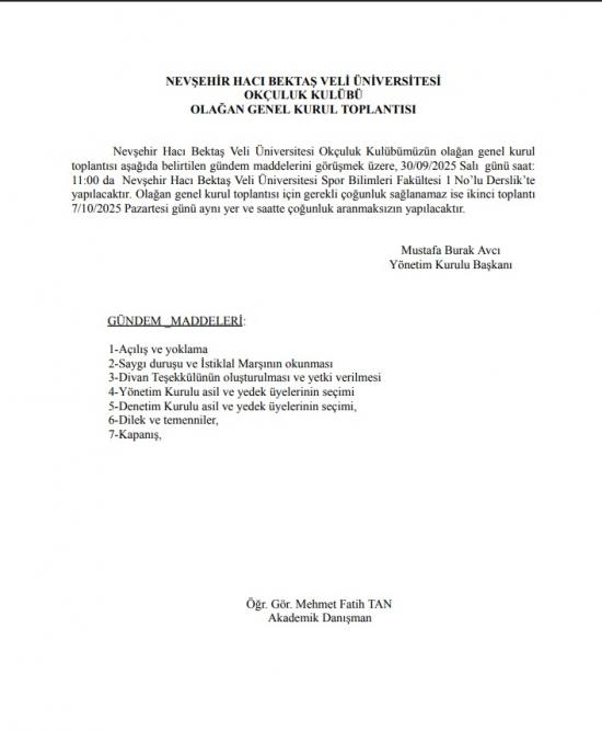 "NEVÜ Okçuluk Kulübü" Olağan Genel Kurul Toplantı Duyurusu