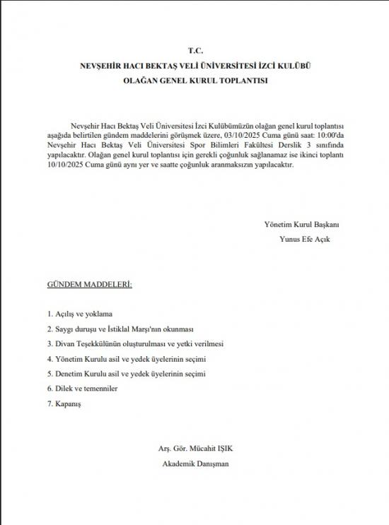"NEVÜ İzci Kulübü" Olağan Genel Kurul Toplantı Duyurusu