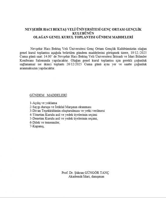 - "NEVÜ Genç Ortam Gençlik Kulübü" Olağan Genel Kurul Toplantı Duyurusu
