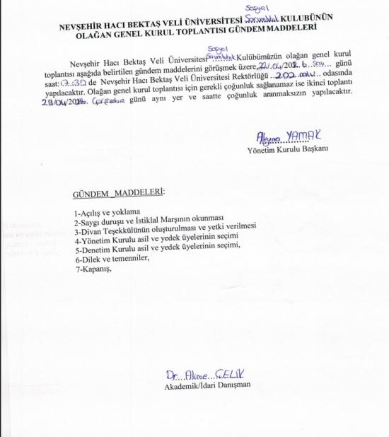 - "NEVÜ Sosyal Sorumluluk Kulübü" Olağan Genel Kurul Toplantı Duyurusu